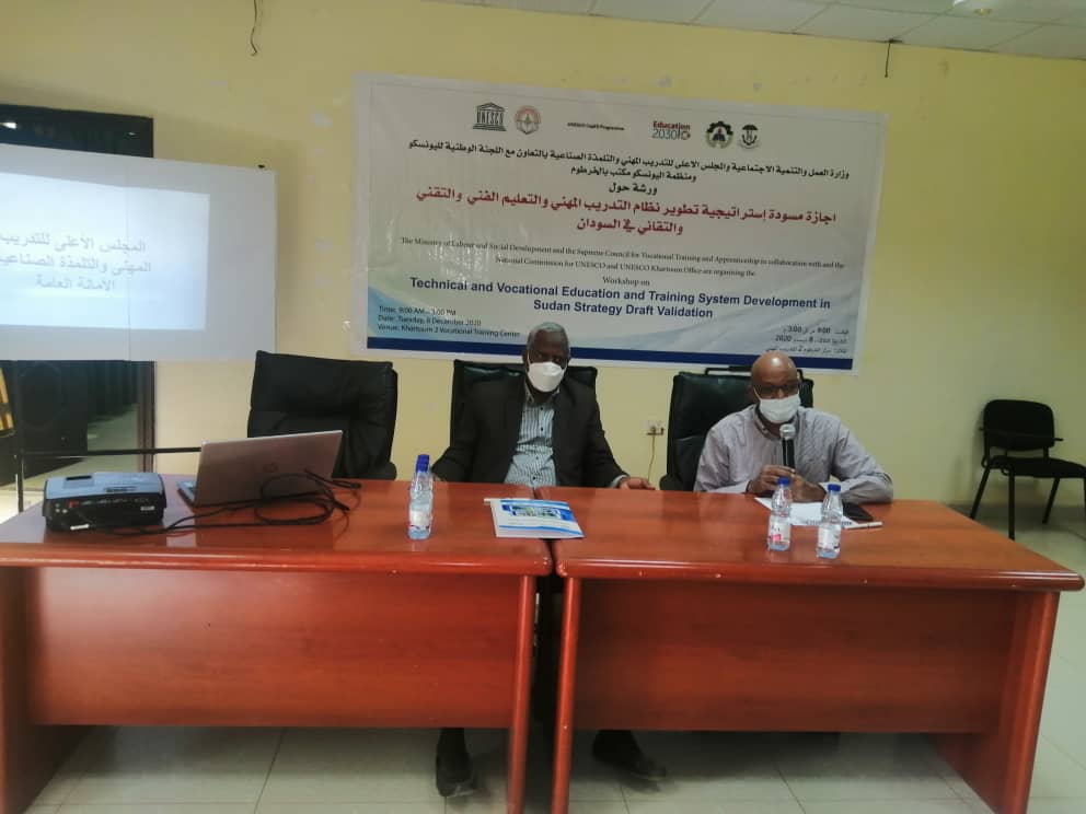 وأشار الدكتور أيمن بدري المدير المناوب لمكتب اليونسكو بالخرطوم مسؤول التربية والإعلام بالمنظمة إلى الجهود التى بذلت لمناقشة هذه الاستراتيجية من أجل الخروج بتوصيات وإعداد الكادر المطلوب لسوق العمل وصولا لنهضة وتنمية السودان، مضيفاً التحديات التى تواجه العمل المشترك للتدريب المهني والتقني والتقاني في السودان.