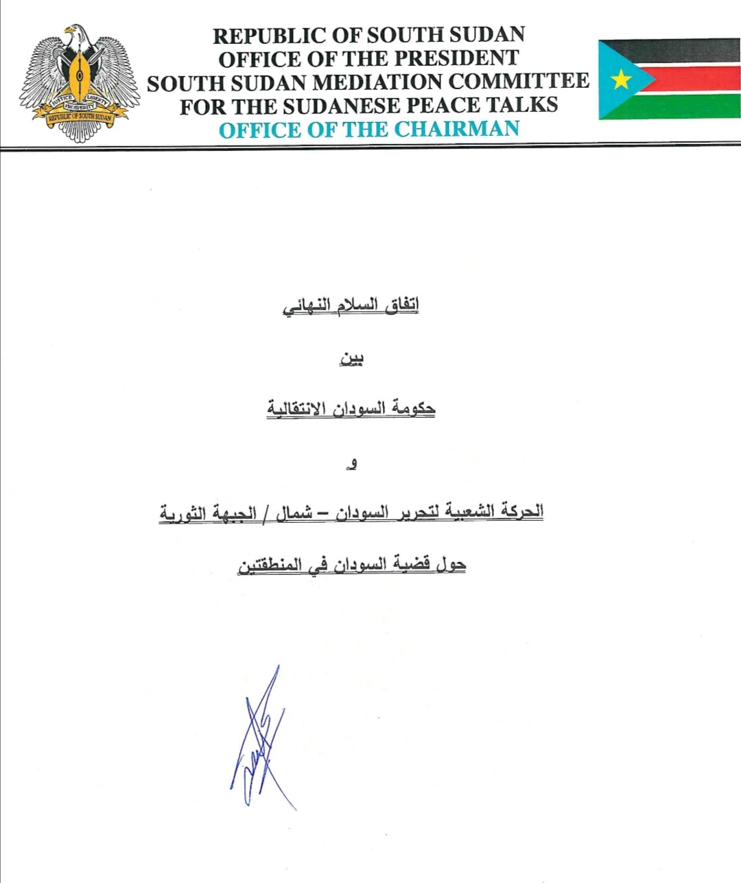 ‏اتفاق السلام النهائي بين حكومة ‎السودان والحركة الشعبية لتحرير السودان شمال / الجبهة الثورية – حول المنطقتين – عبر الرابط :