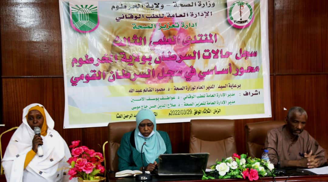 و أضاف علي طه بأنه لاتوجد معلومات واضحة ودقيقة عن مرضي السرطان تعين متخذي القرار علي وضع قرارات سليمه الي ذلك كشفت د.عواطف يوسف مدير الإدارة العامة للطب الوقائي عن وجود ثلث حالات مرضي السرطان في ولاية الخرطوم. باعتبارها المركز وتتوفر فيها كافه الخدمات العلاجية مما جعلها القبلة والوجهه لكثير من المرضى
