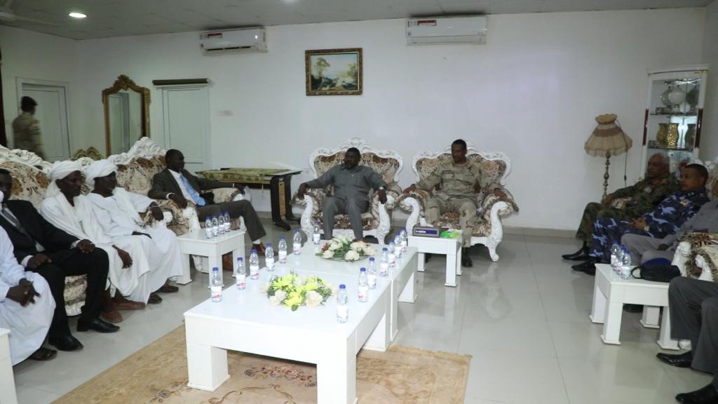 التقى نائب رئيس مجلس السيادة الانتقالي الفريق أول محمد حمدان دقلو ببيت الضيافة ،أعيان قبائل محلية فوربرنقا بولاية غرب دارفور.