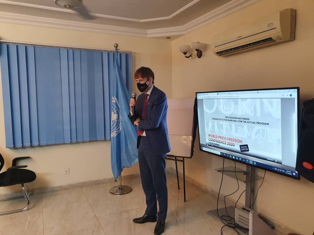 وحول تقييمه لأداء الصحفيين السودانيين بعد الثورة قال لا تزال هناك العديد من الصعوبات تواجه الصحفيين ، مؤكداً استمرار دعمهم للصحفيين السودانيين خلال العام -2021-2020، لافتاً إلى دعمهم خلال عام 2017 في دورات السلامة الصحفية ضمن ورشتي عمل واحدة في جنوب دارفور – نيالا والثانية في شمال كردفان – الأبيض. وتمويلهم لإذاعة “دبنقا” على سبيل المثال لسنوات متتالية.