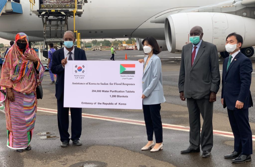 وصلت مساعدات ودعم للمتضررين من الفيضانات من العاصمة الكورية سيول إلى الخرطوم امس السبت بالإضافة إلى مساهمة الحكومة الكورية البالغة 250 ألف دولار أمريكي من خلال مكتب تنسيق الشؤون الإنسانية التابع للأمم المتحدة. وسيتم تسليم مواد الإغاثة بالتعاون مع الحكومة السودانية إلى المحتاجين من الشعب السوداني.