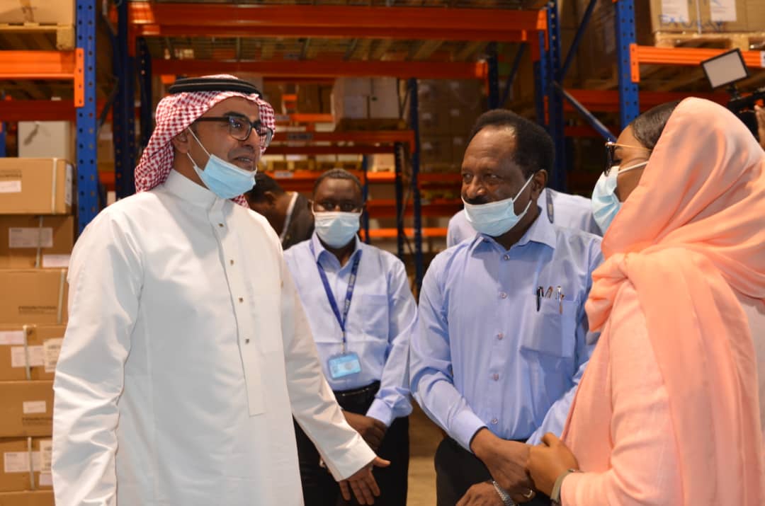 دشنت سفارة المملكة العربية السعودية بالخرطوم بالصندوق القومي للامدادات الطبية تسليم المنحة السعودية للسودان والبالغة 50 طن من الادوية والمستلزمات الطبية واجهزة التنفس لمجابهة جائحة كورونا بجانب 3 طن من الادوية المختلفة تنفيذا لتوجيهات خادم الحرمين الشريفين.
